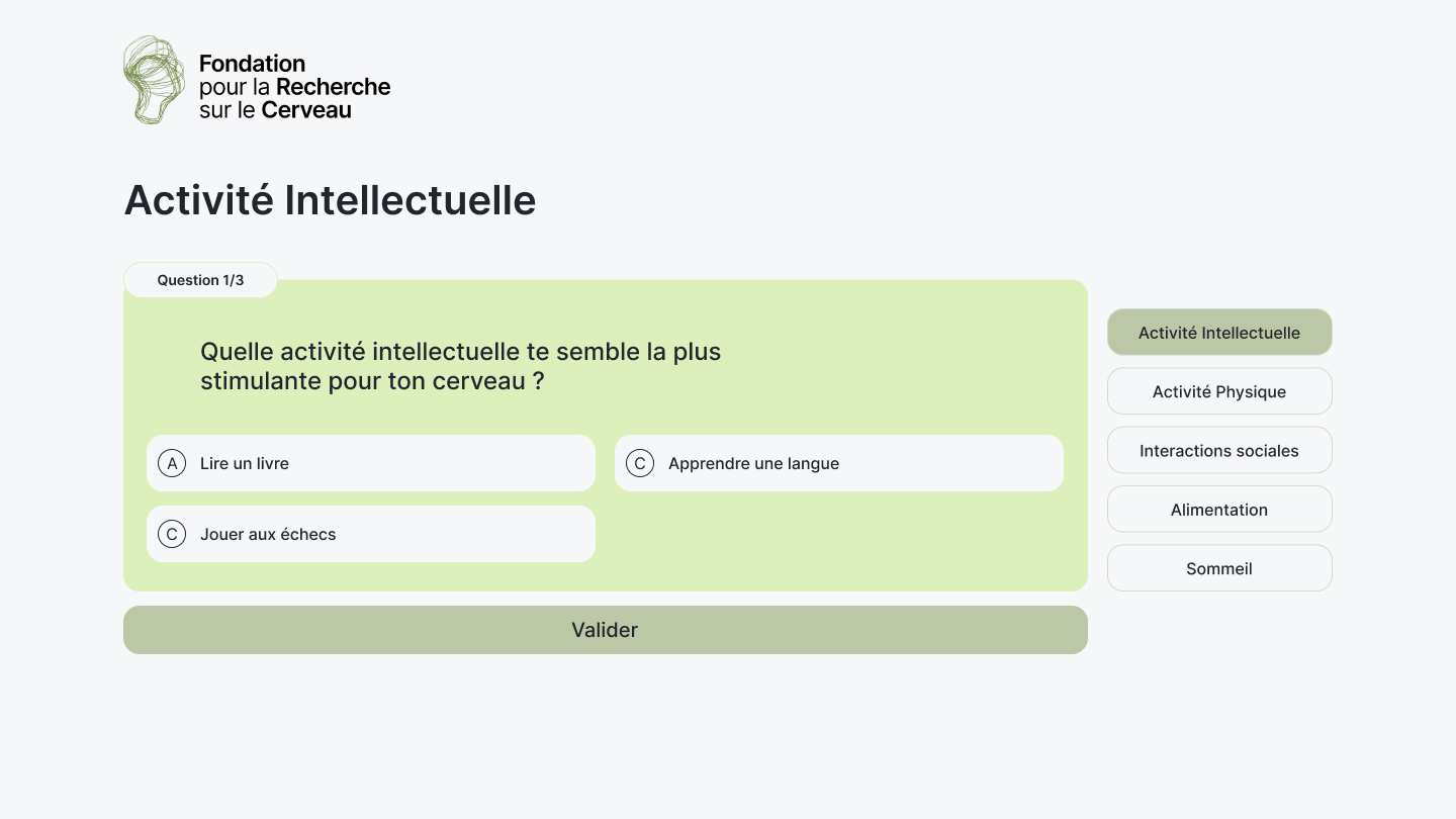 This professional project, carried out in collaboration with Moi Mon Cerveau, involved designing a website capable of translating the brand’s identity and values into a clear and engaging digital experience. The objective was to create a coherent and accessible interface that supports the project’s mission, with particular attention paid to structure, usability, and visual consistency.